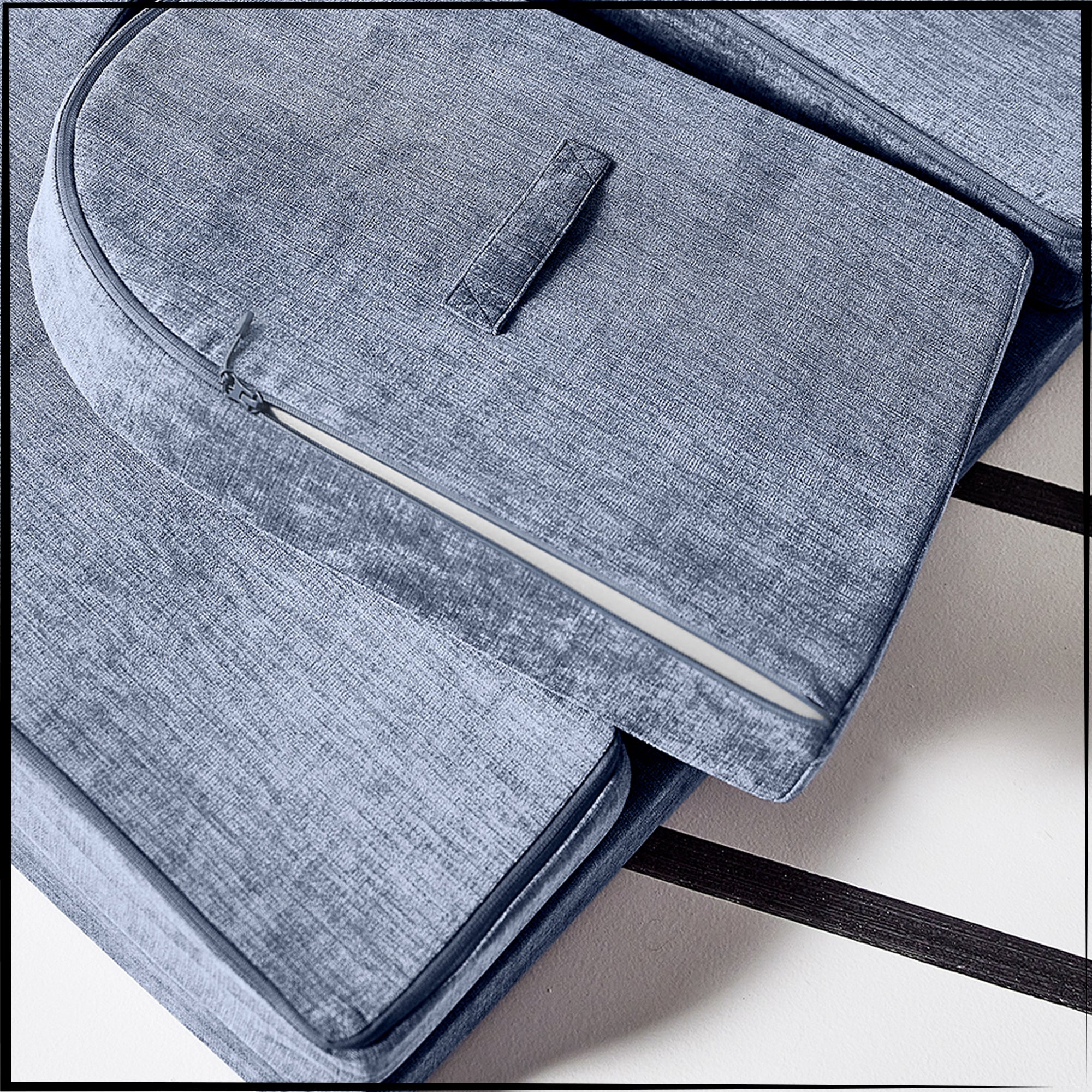 Unzip and gently remove the covers. Machine wash covers with cold water, on gentle cycle with mild detergent. Tumble dry low. Do not bleach or iron. Spot clean foam with a damp cloth. Do not machine wash foam.