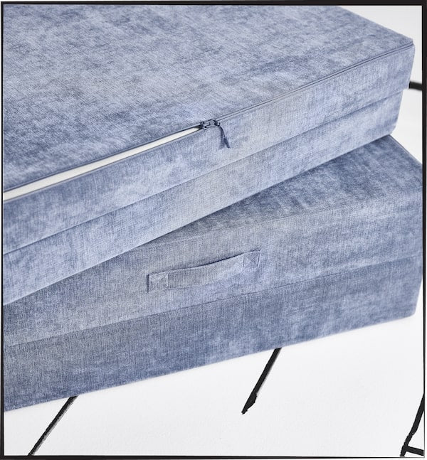 Unzip and gently remove the covers. Machine wash covers with cold water, on gentle cycle with mild detergent. Tumble dry low. Do not bleach or iron. Spot clean foam with a damp cloth. Do not machine wash foam.