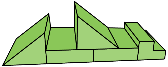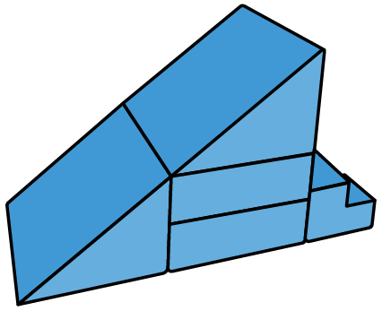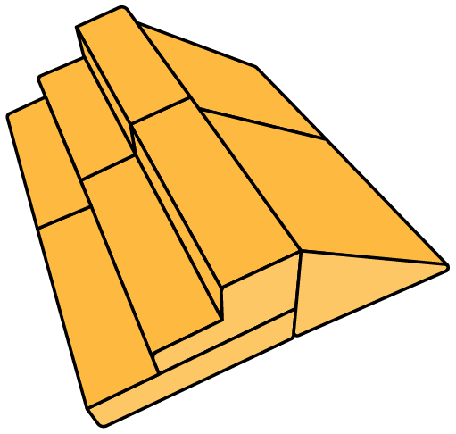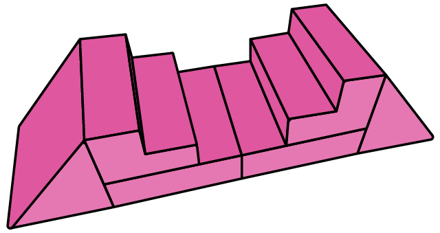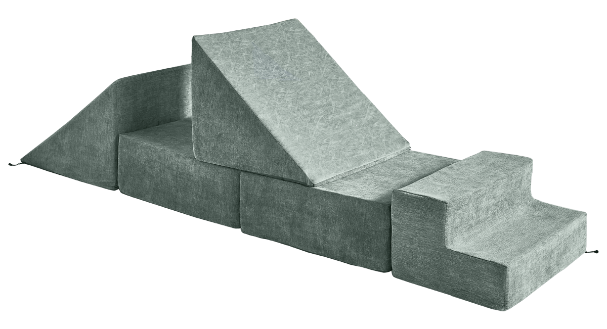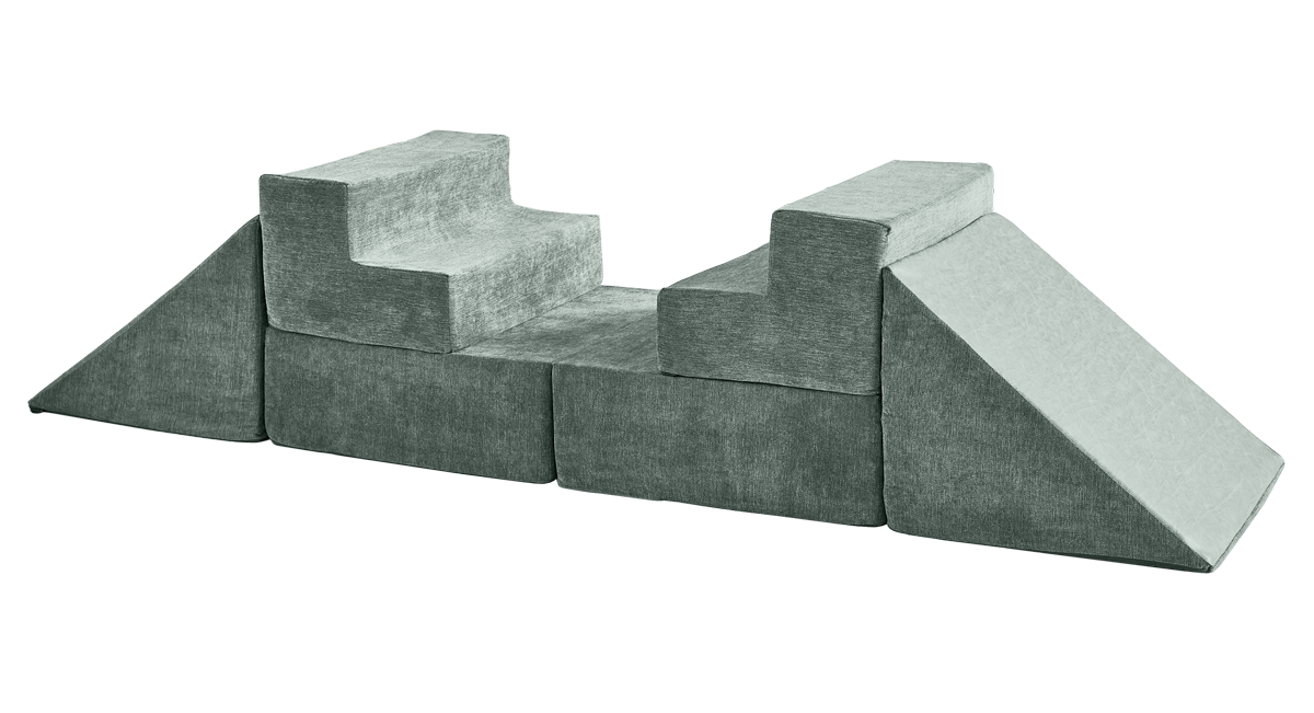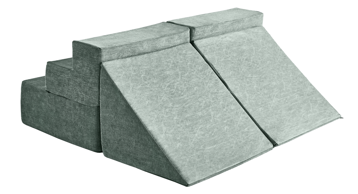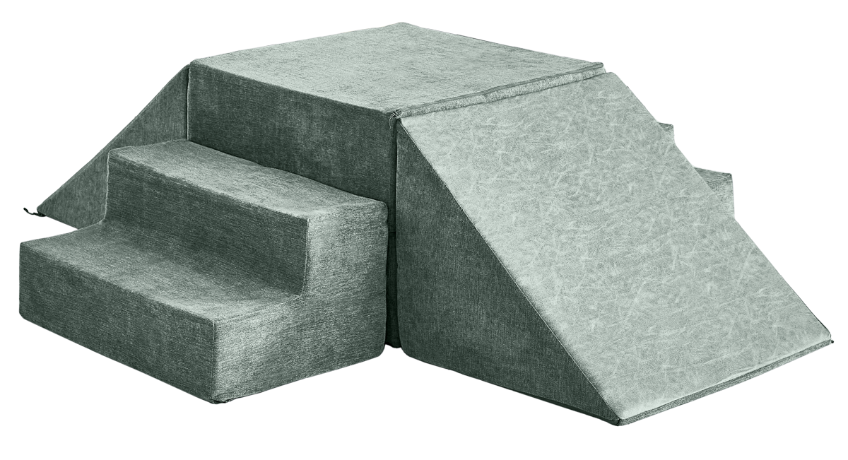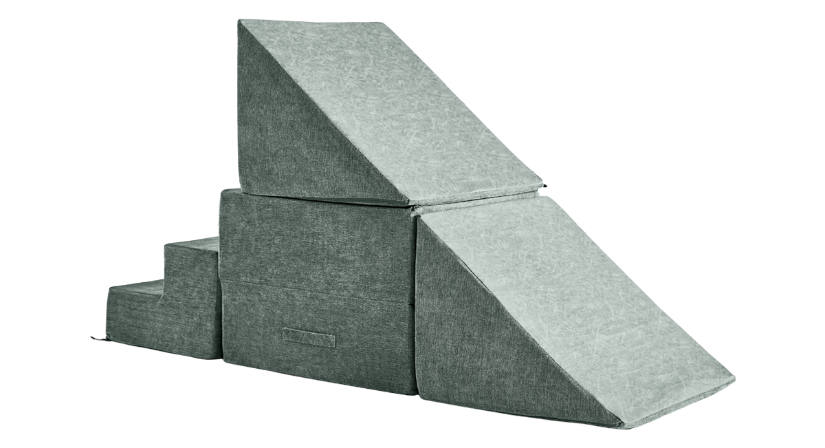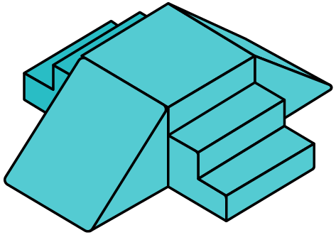 - 5 modular pieces: 1 hinged panel, 2 sets of stairs, 2 triangles