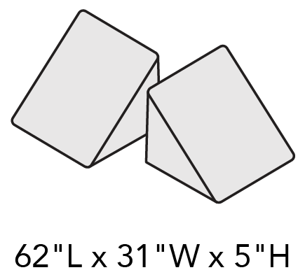 - 5 modular pieces: 1 hinged panel, 2 sets of stairs, 2 triangles